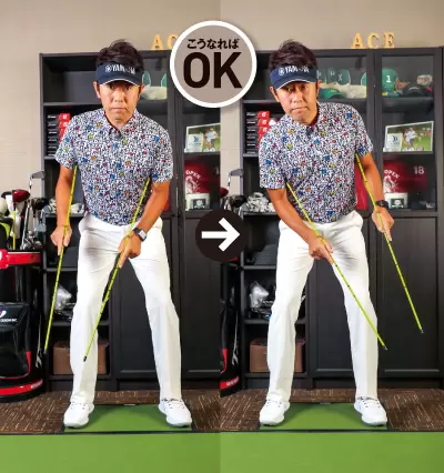 シャフトでできる三角形の面が、ほぼ平行な形で左右に動けばOK。