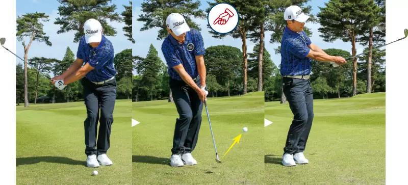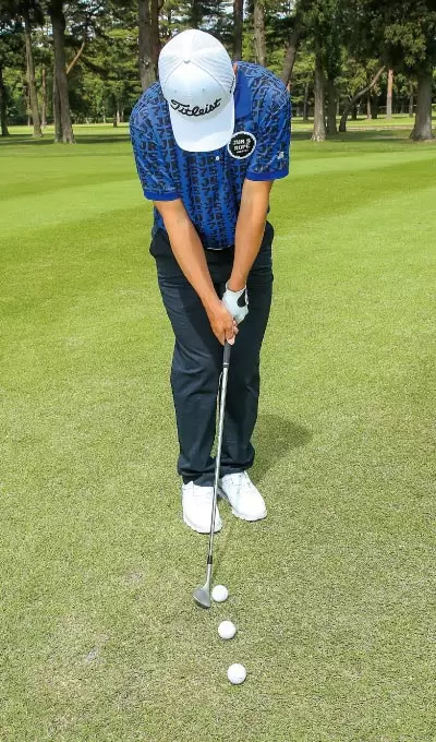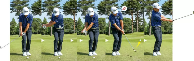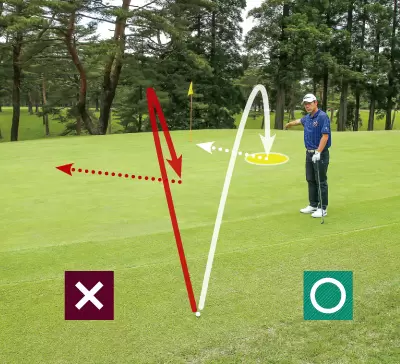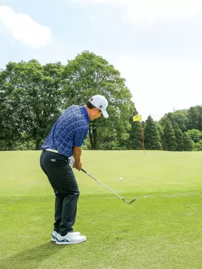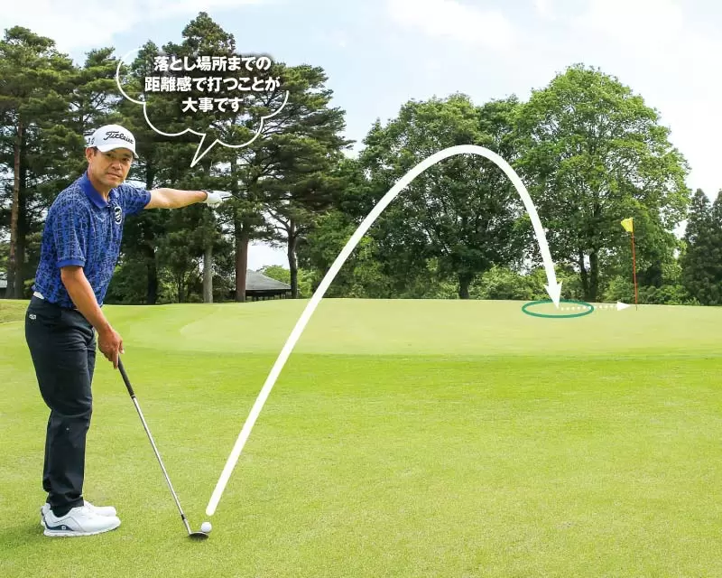 スイングの軌道はランニングアプローチと同じ。打ち出し角がやや高くなり、キャリーが増える。