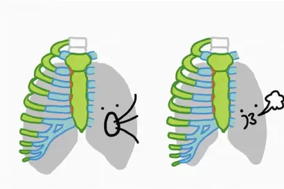 肺が空気で満たされると肋骨いっぱいに広がる