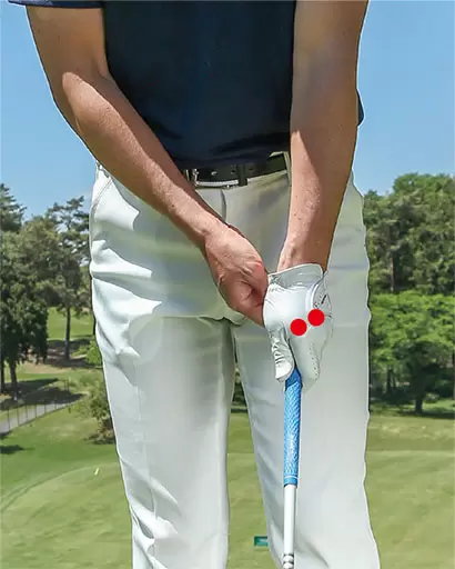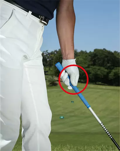 左手の親指を詰めるように握ると左手をかぶせやすくなる。