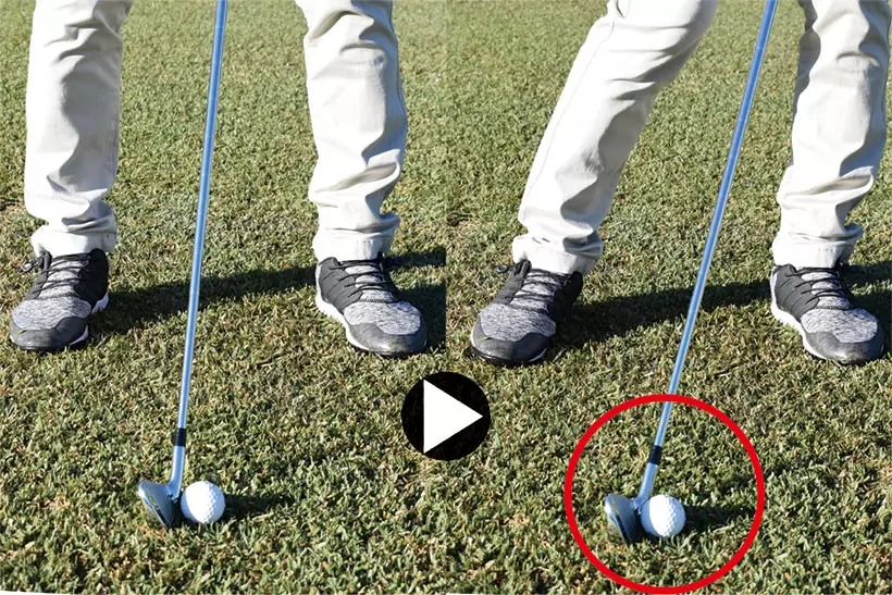 アドレスよりもグリップを目標側に寄せて、ハンドファーストのインパクトをつくる。