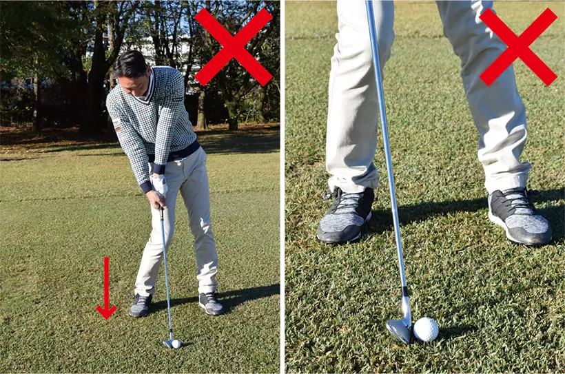 ユーティリティクラブで打つときもボールを上げようとするのはNGだ。
