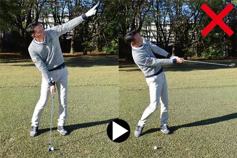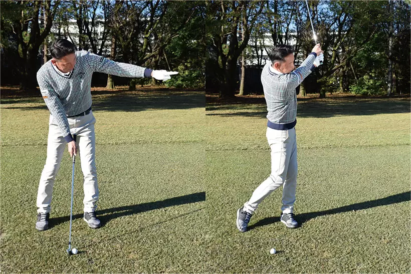 フィニッシュの手の高さも左肩くらいが目安。トップと左右対称形となるのが理想だ。