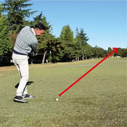 アドレスよりもロフト角を減らすつもりでインパクトする。
