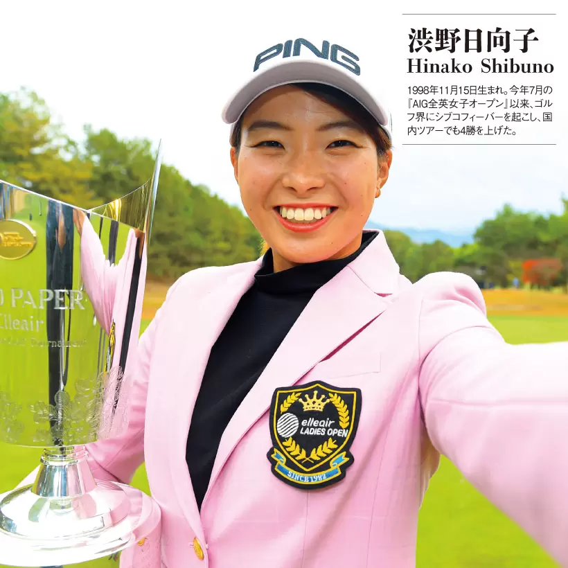 渋野日向子|1998年11月15日生まれ。今年7月の『AIG全英女子オープン』以来、ゴルフ界にシブコフィーバーを起こし、国内ツアーでも4勝を上げた。