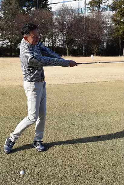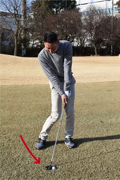 スイングはパットのイメージだが、ボールを上からとらえる意識が必要だ