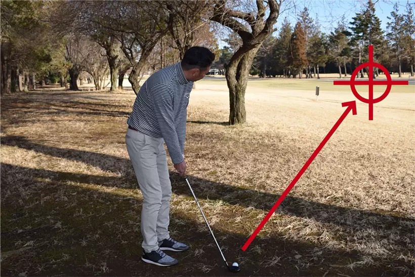 7番アイアンのショットの感覚でボールをダウンブローにとらえる