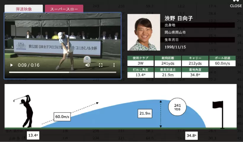 渋野日向子のスーパースロー映像とスイングデータ。