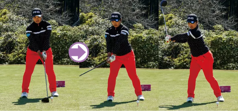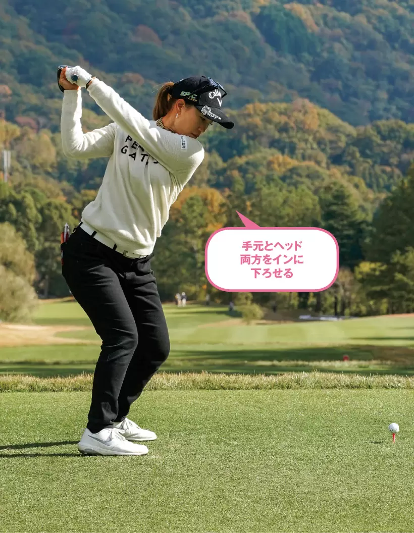 少しアウトサイドにヘッドを上げることでも、クラブはインサイドから下ろしやすくなる。
