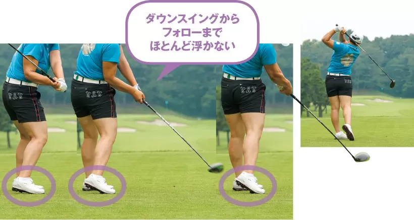 ダウンスイングからフォローまでほとんど浮かない