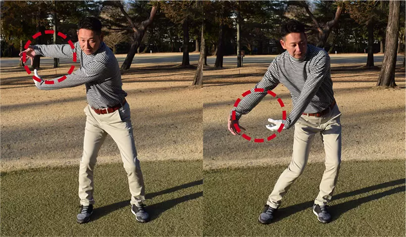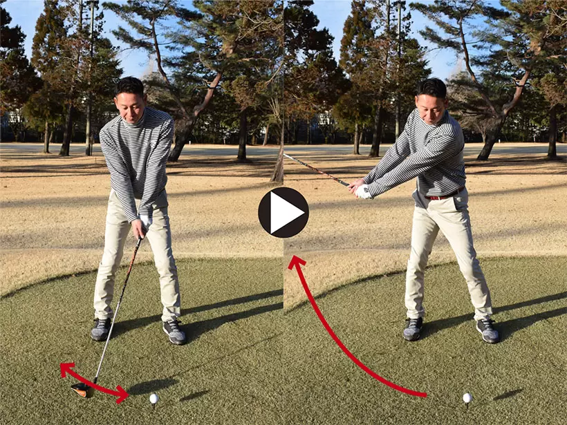 クラブをフォロースルーの方向に出してからバックスイングする素振り練習も飛距離アップに役立つ