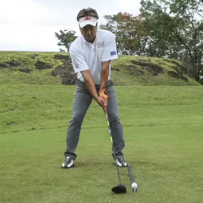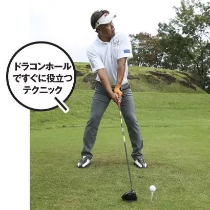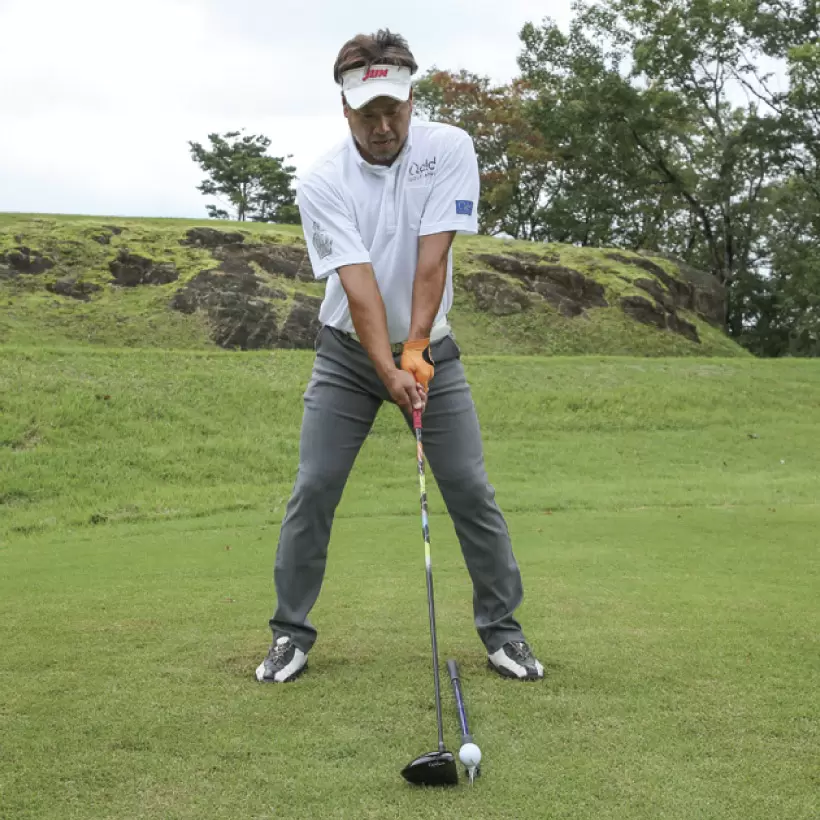 トゥダウンするとちょうどスクエアになるからそのまま低く振れば真っ直ぐに飛ばせる。