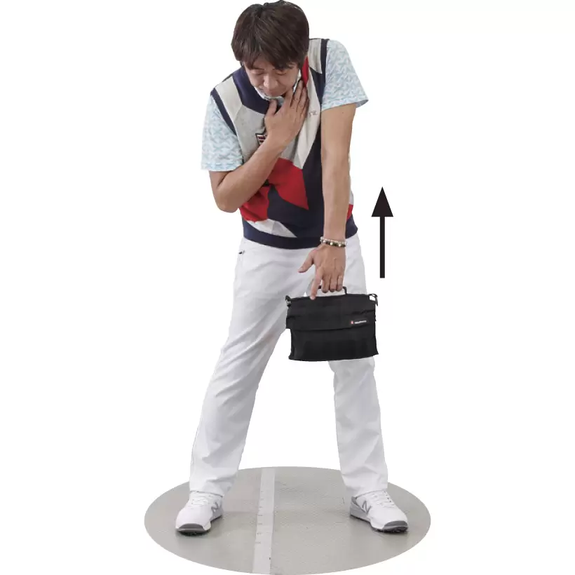 砂袋など重いものを左手で持つ。左手薬指をひっかけて使う。