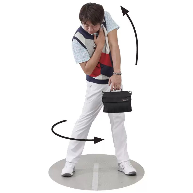上半身は縦方向に切れ上がり、下半身は横方向に回転する。上下左右の分離を体感できる。