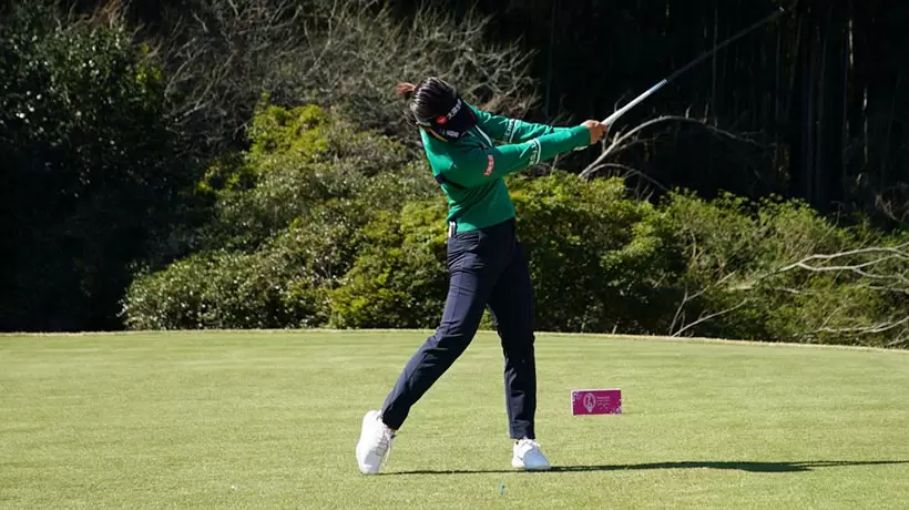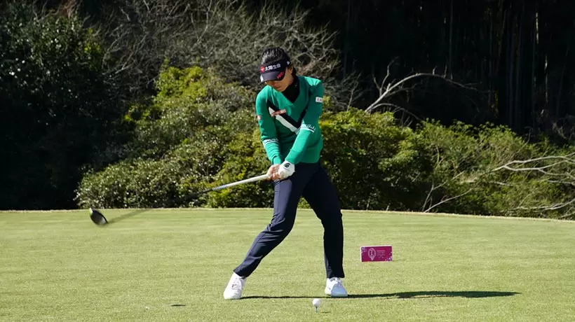 高いトップは飛ばしの要素。上半身と下半身の捻転差も最大限に
