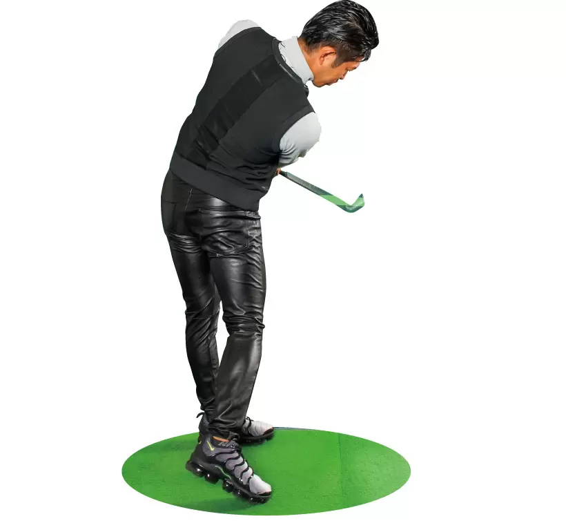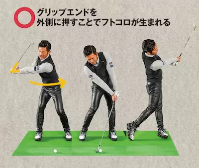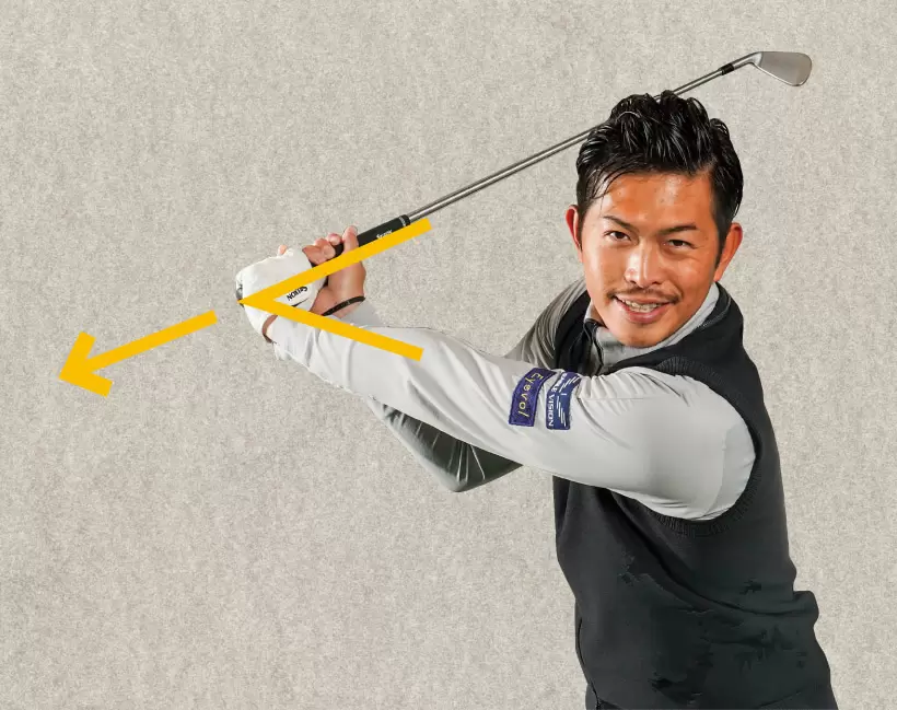 グリップエンドを後方に押して体から手元を離す