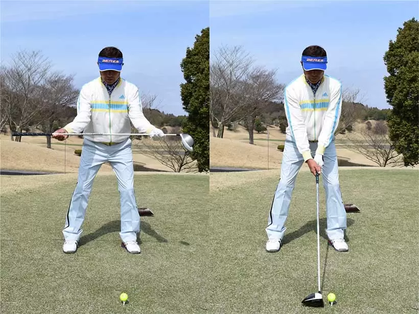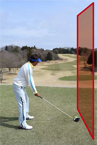 ターゲットラインのやや外側に大きな壁があると想定し、壁と平行に立つ気持ちでアドレスをつくるといい