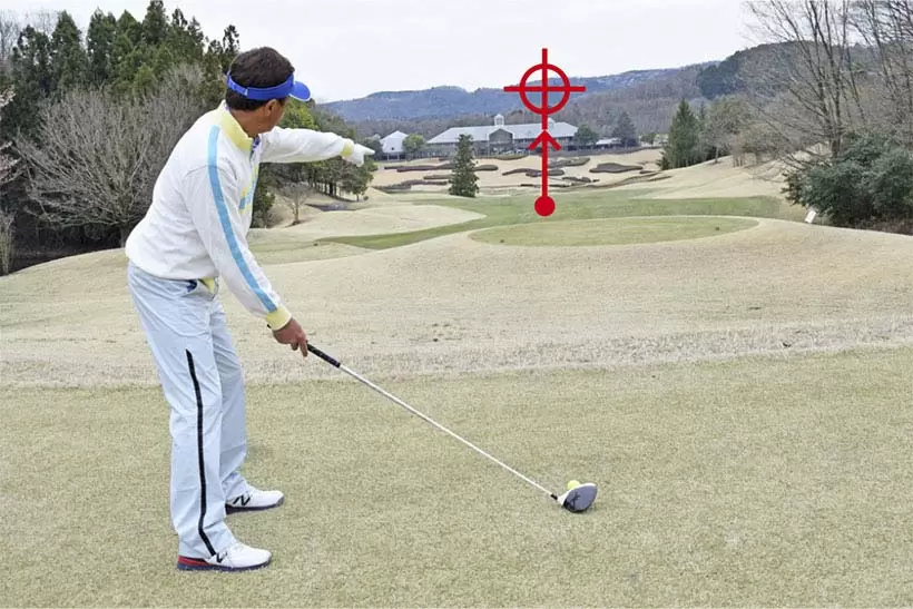 打ち上げのティショットはボールを上げたい心理から目線が高くなりやすい。