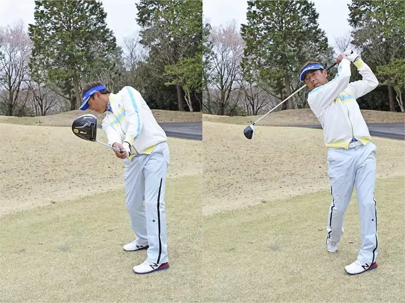 目線を水平にキープして、平らなホールと同じアドレスをつくる。