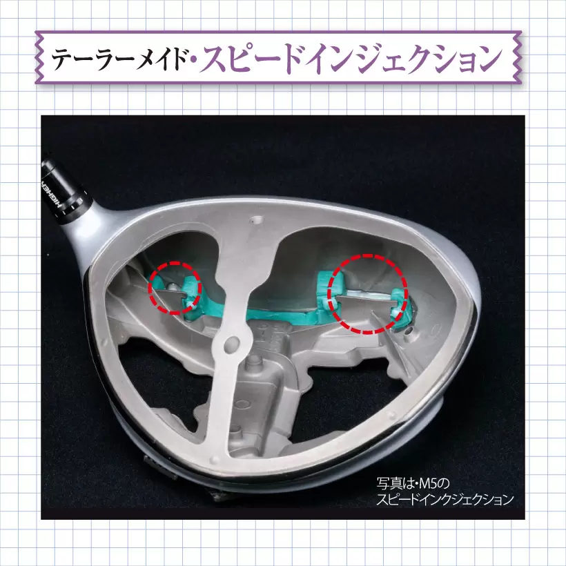 赤丸で囲まれた部分が「スピードインジェクション」の心臓部。全数の反発性能 を計測したデータに基づき、1本1本、反発性能をルールの上限に揃えている。
