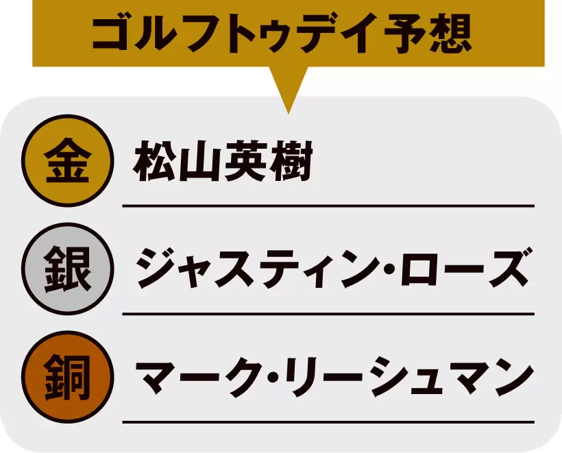 日本の芝は彼が1番理解していると思うので金メダル。マキロイとラームはゴルフゲームの総合力が群を抜いているので期待大ですね。