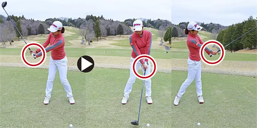 • スイング中は常に右手を左手よりも高い位置にキープしておくことを心がけています。