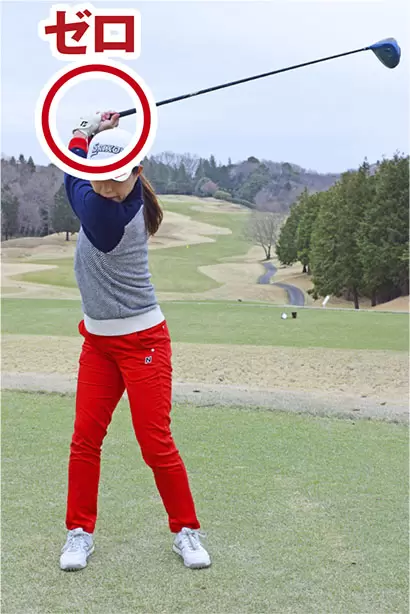 • トップでは力がゼロの状態。クラブの重さが両手に十分に伝わります。