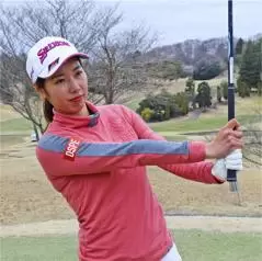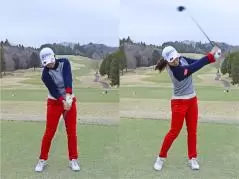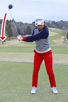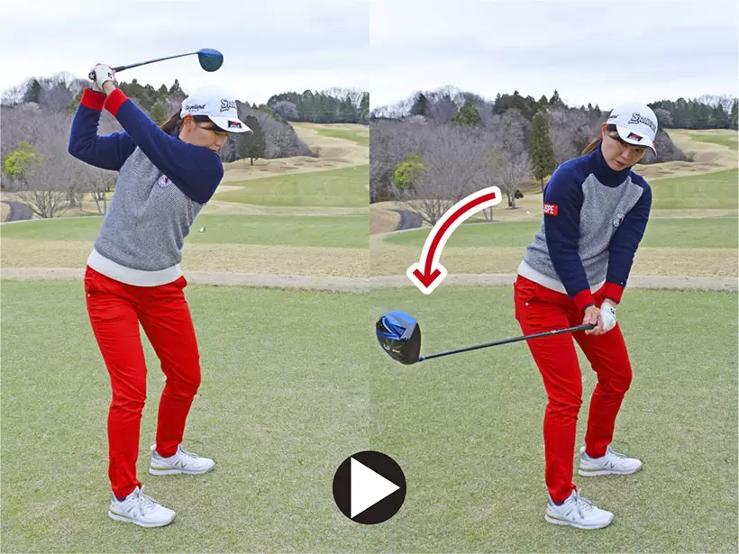 • ダウンスイングであまりタメをつくらず、早めにリリースする感覚です。