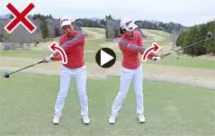• 意識的にフェースを返そうとすると腕がねじれてフェースの向きが変わってしまいます。