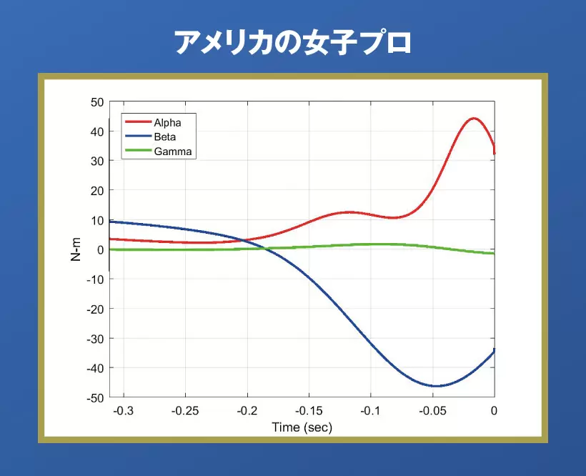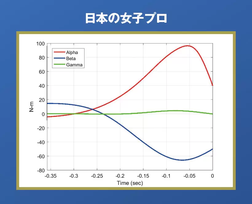 日本の女子プロに比べて半分足らずのトルクしかかかっておらず、エネルギー効率の良さが伺える。