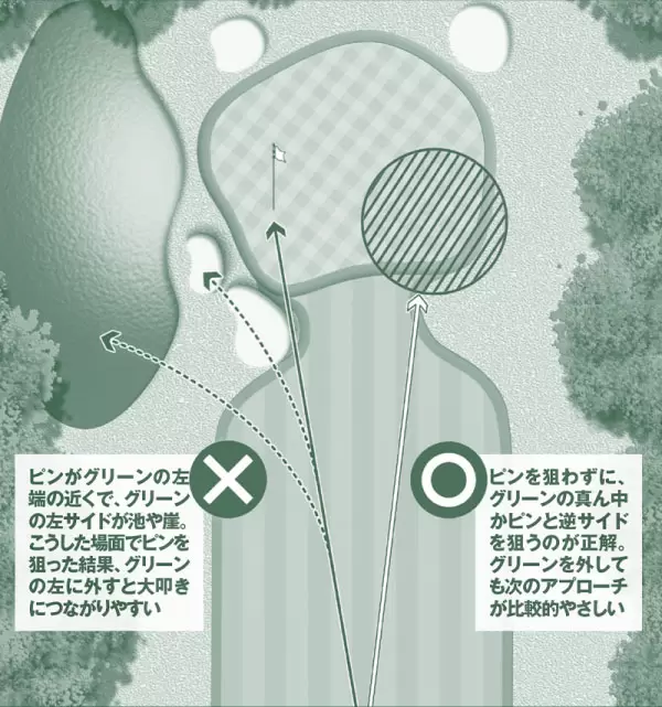 ピンを直接攻めると危険な場面ではピンを無理に狙わない。