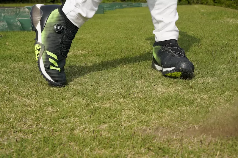 縦の曲がりには柔軟でストレスフリーな履き心地。なのに、スイング時の横方向の力にはしっかりとしたホールド感を発揮してくれる。