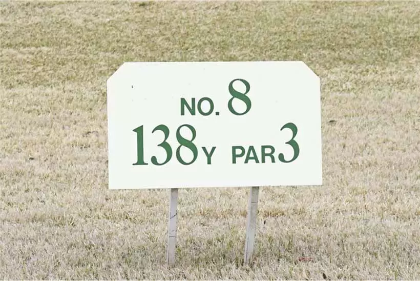 ヤード表示板はグリーンの中央までの距離を表示しているのが一般的。