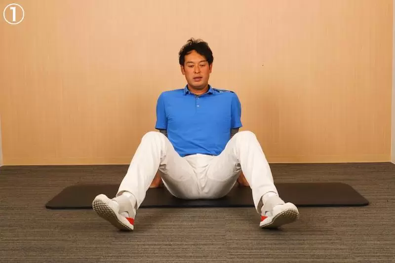 床に座って後ろに手をつき、力を抜いて両ヒザを左右に倒します。