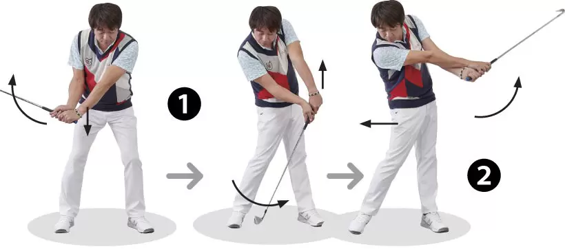 歩くと、誰もが意識せず左右の足が別々に(分離して)動き、軸が安定してバランスが取れた状態になる。人間に本来備わっている、このバランス感覚をスイングに生かすことが重要なのだ。