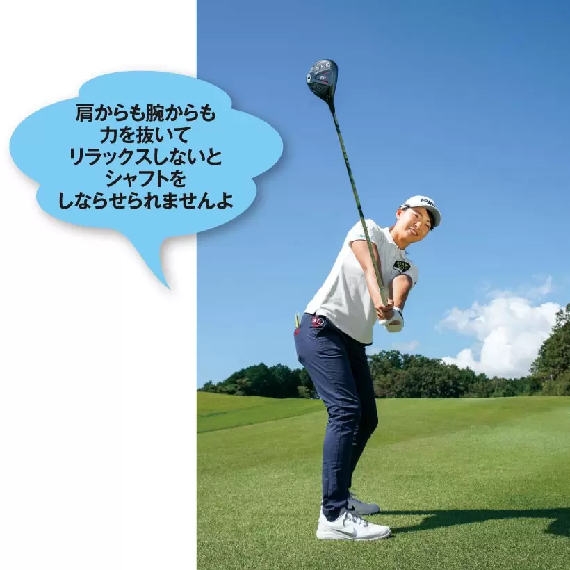「かくいう私も、シャフトのしなりを使えるようになってフェアウェイウッドの弾道の高さが2倍くらいになりました」