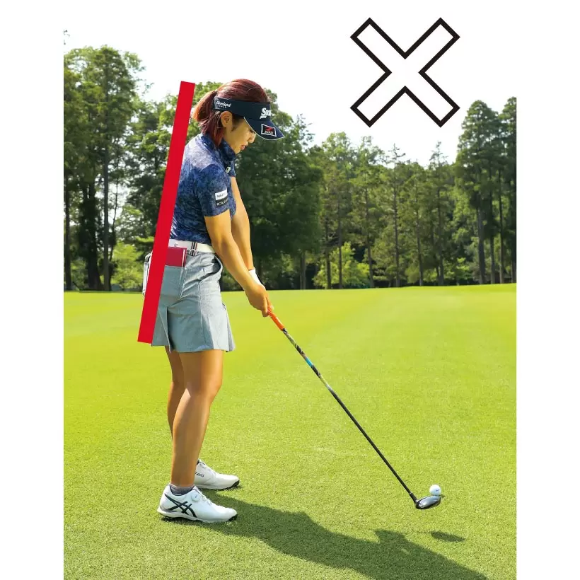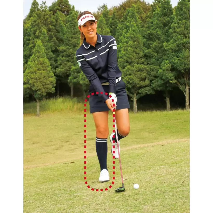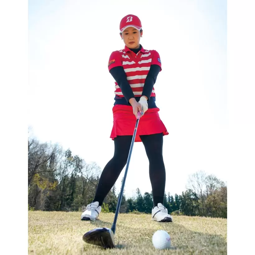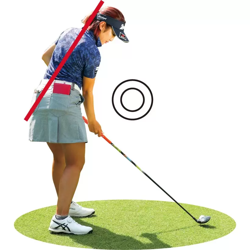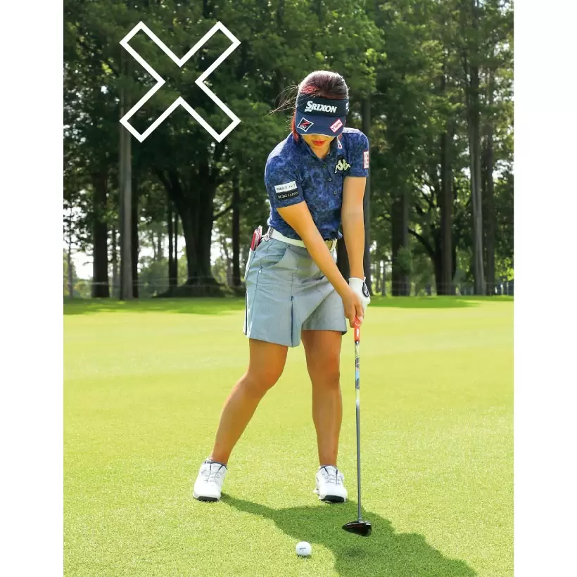 クラブが気持ちよく振り切れないという人はボールを左端に置くと効果的。
