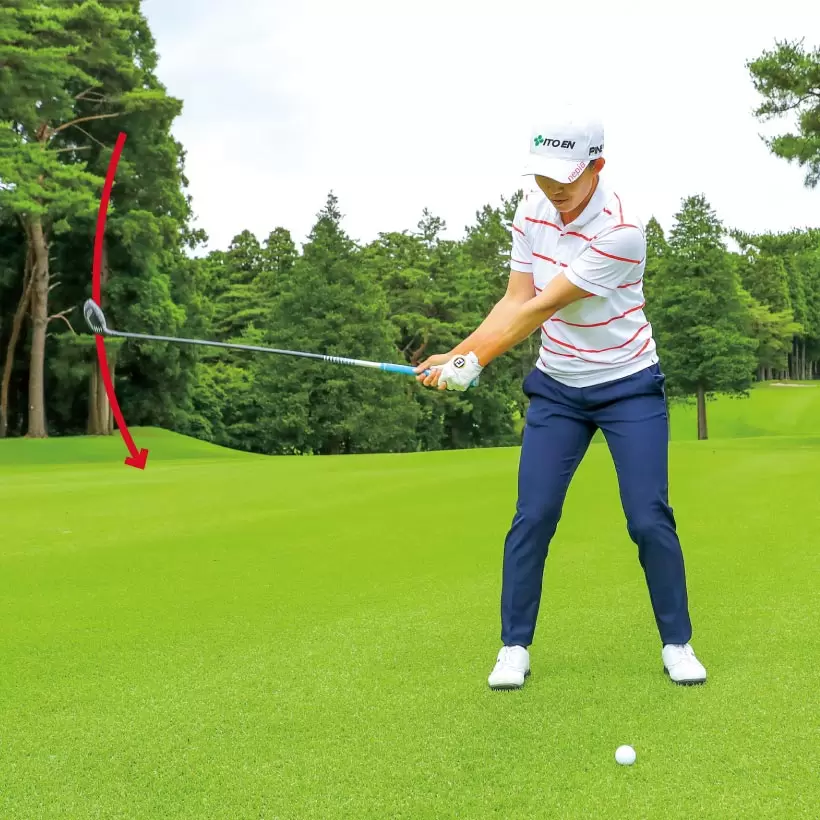 上から打ち込もうとするとインパクトが詰まってダフリになりやすい。