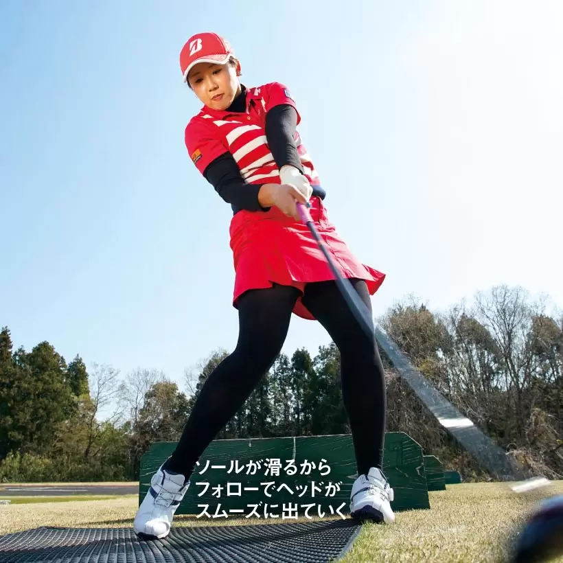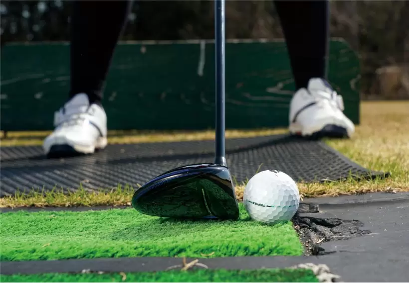 ボールを左端に置くとクラブヘッドの加速感も体感できる。