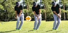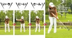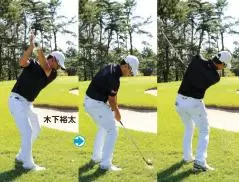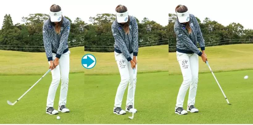 落とし所を見たまま行った素振りを再現。終始左体重でフェースターンを意識しない。