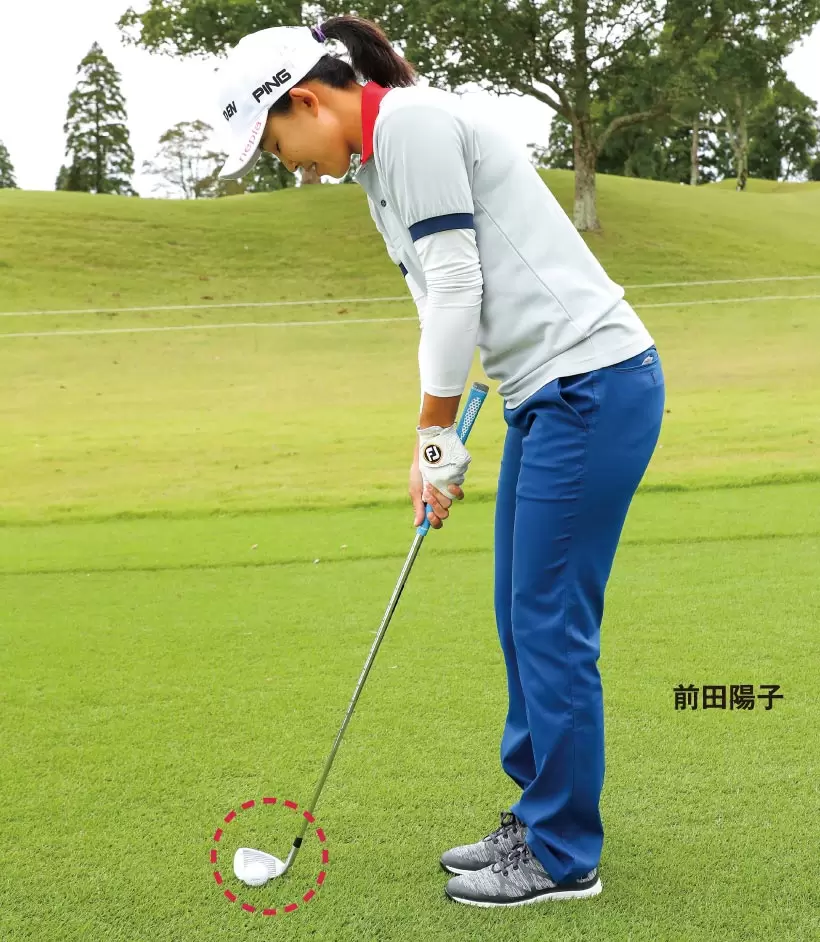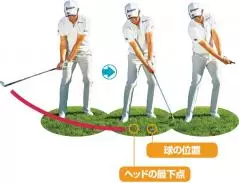 スイングの最下点よりも先に球を置けば、自然とアッパー軌道でインパクトできる。