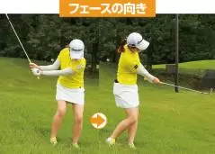 フェースを開くとバウンスが使えてヘッドが滑りやすくなる。開きすぎないように注意。