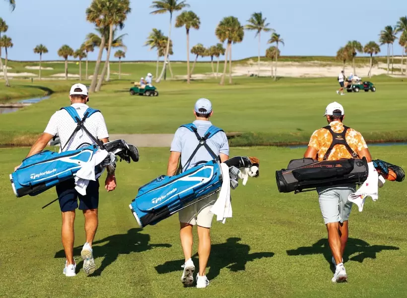 4人はラウンド中もキャディバックを担ぎながら、一定の距離をとって歩いていた。もちろんハイタッチなどもなし。
