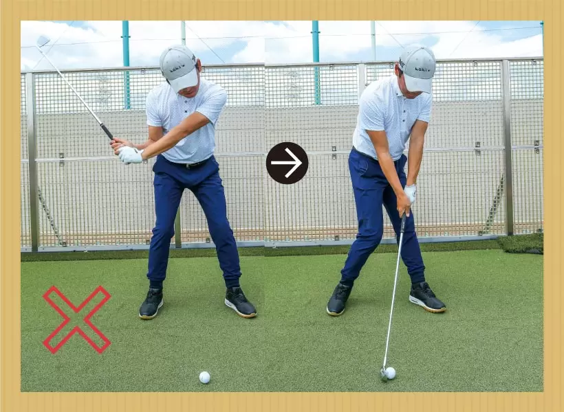 ボールを上から打とうとしてインパクトで体が突っ込んでしまうゴルファーも多い。こうした「なんチャってダウンブロー」ではダフリなどのミスとなる。