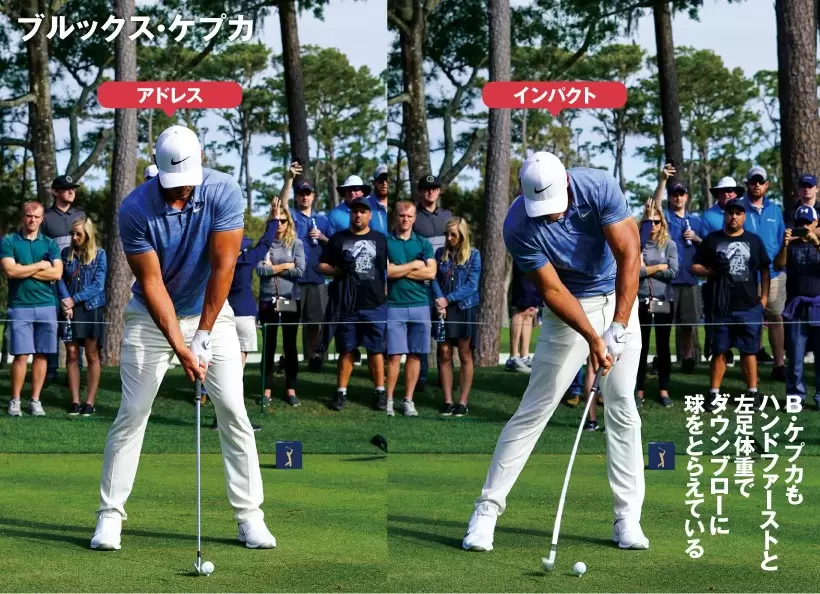 ノーコック気味に上げるB・デシャンボーもダウンスイングではコッキングが入っている。