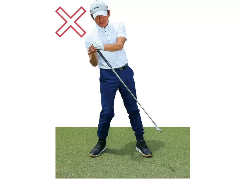 グリップ支点が目標と反対に動くと減速中にインパクトを迎えてしまう。
