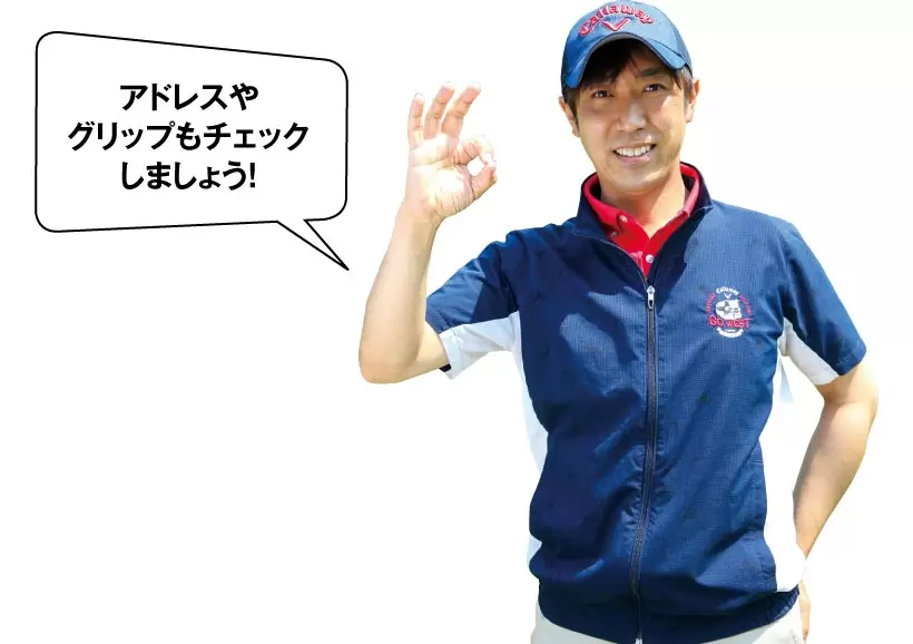 左手のヒラでグリップエンドを押さえてアドレスの姿勢をつくろう