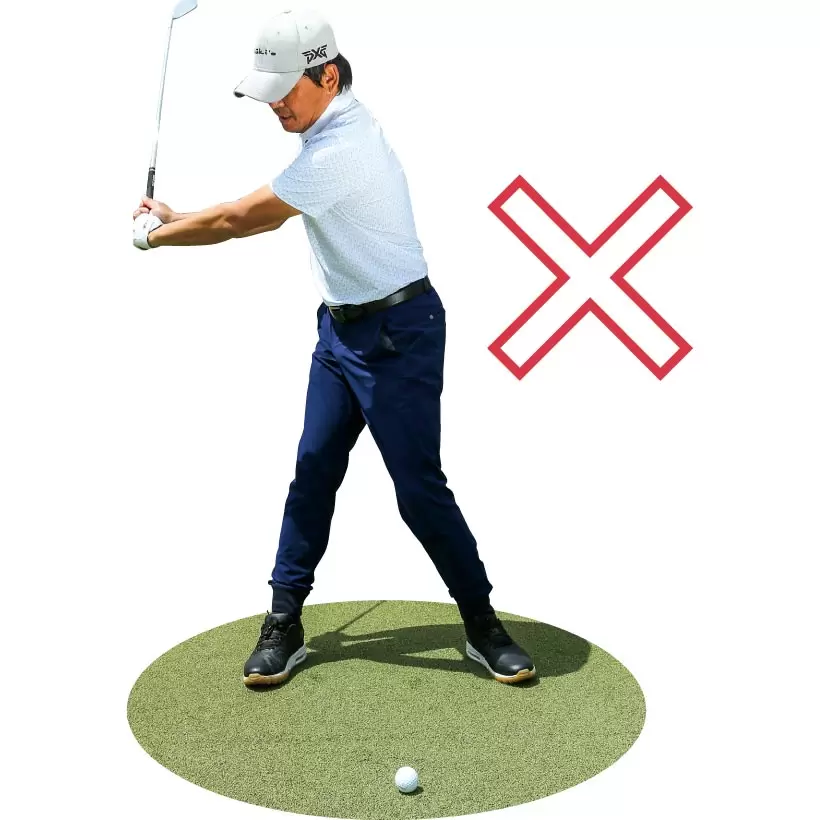 テークバックの始動から体をいきなり回そうとするのはNGだ。