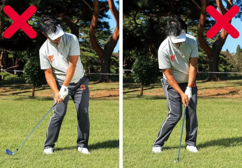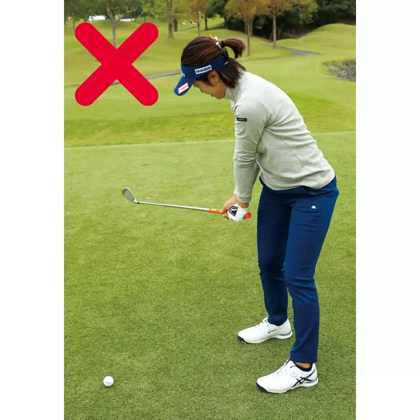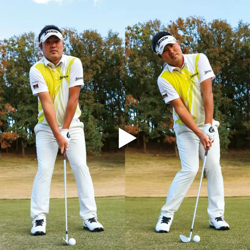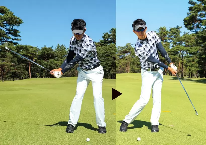 ダウンスイングのヘッド位置を確認。写真くらいの高さにあればOK。