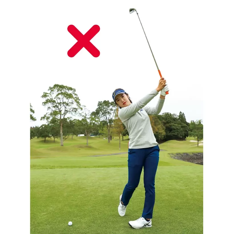 フォローで右腕を地面と平行にしてから惰性でフィニッシュに向かうイメージ。